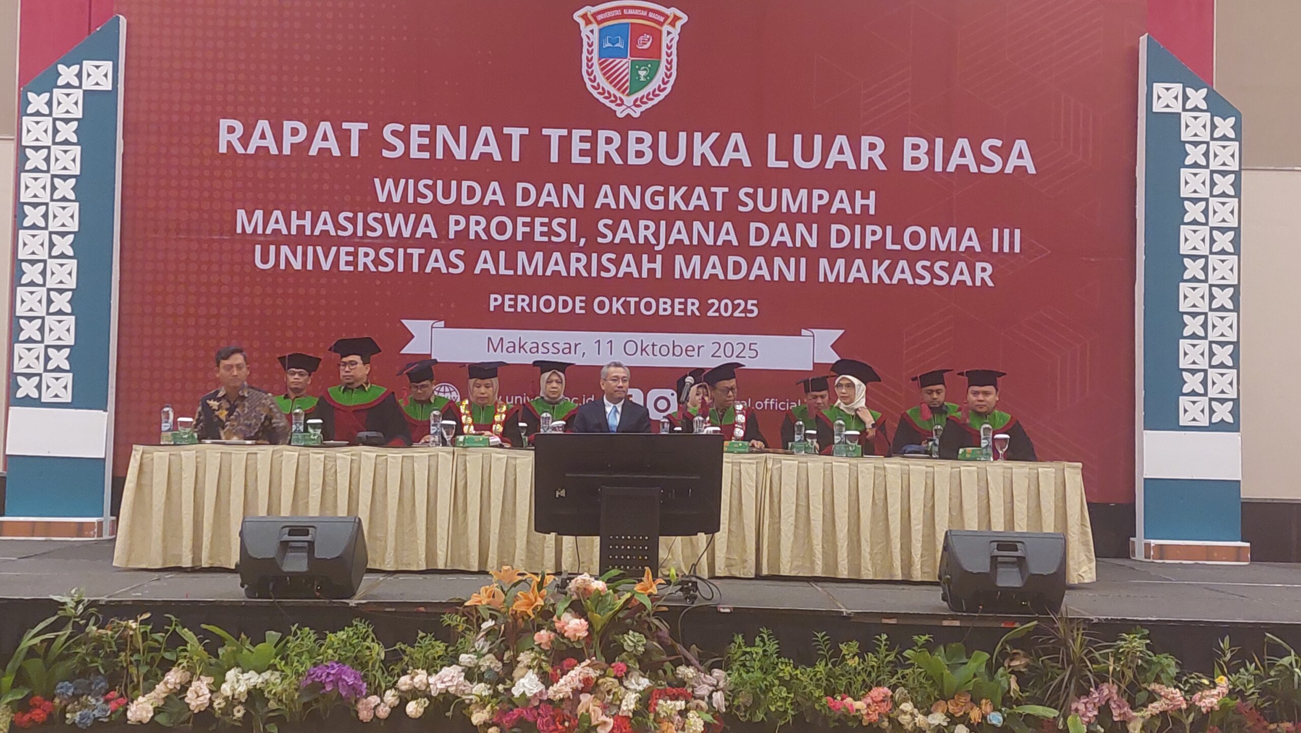 MAKASSAR, ALTERNASI.NEWS — Sebanyak 204 lulusan Universitas Almarisah Madani Makassar (UAMM) resmi dikukuhkan dalam Wisuda dan Sumpah Profesi Tahun Akademik 2024/2025, yang digelar di Ballroom Hotel Dalton Makassar, Sabtu (11/10).